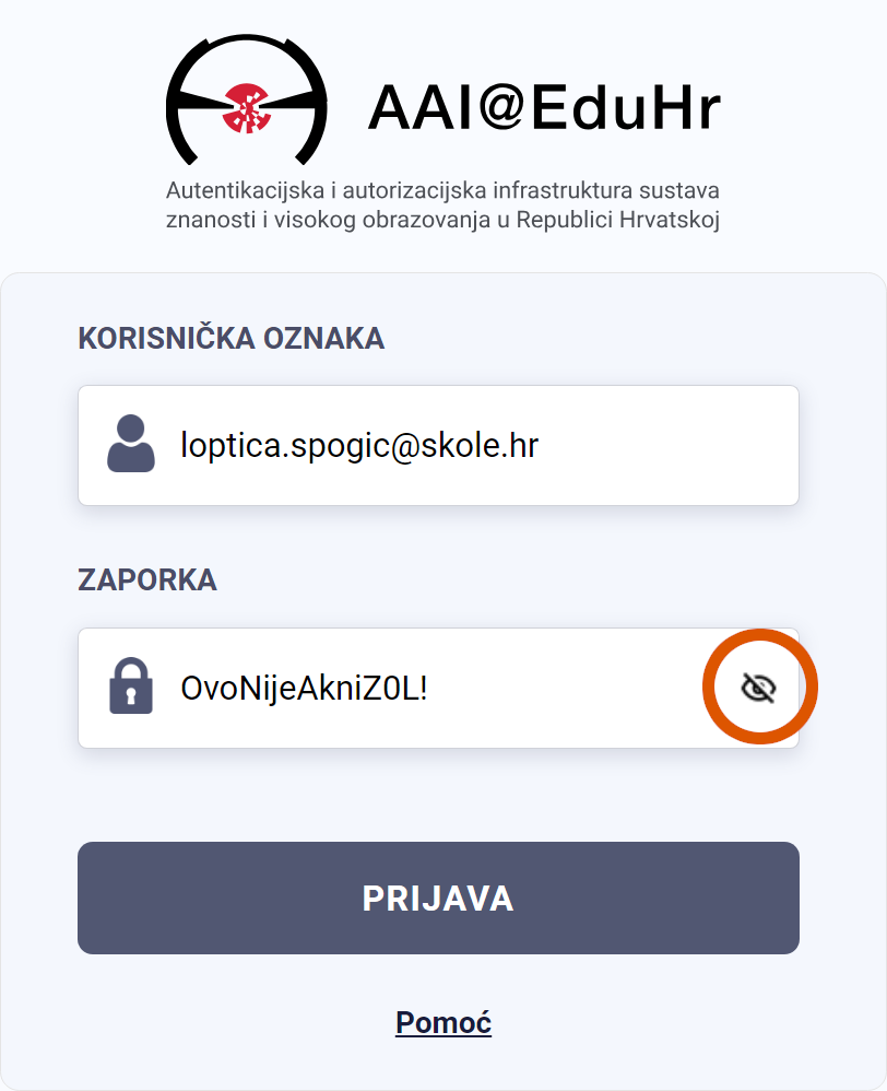 Pri prijavi putem AAI@EduHr